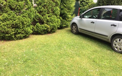 Autostellplatz, Gartenmöbeln, grose Garten.