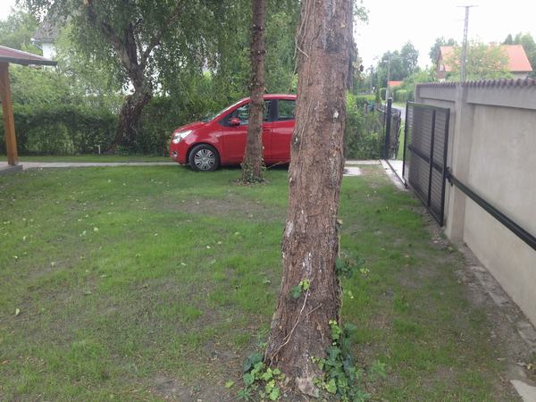 Autostellplatz, Gartenmöbeln, grose Garten.