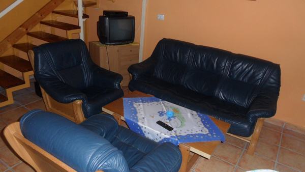 Upstairs: Kitchen, living room, 1 shower, 1 toilet, terrace, parking place,