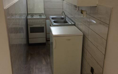 Kitchen with a living room, shower, toilet, terrace, parking place,