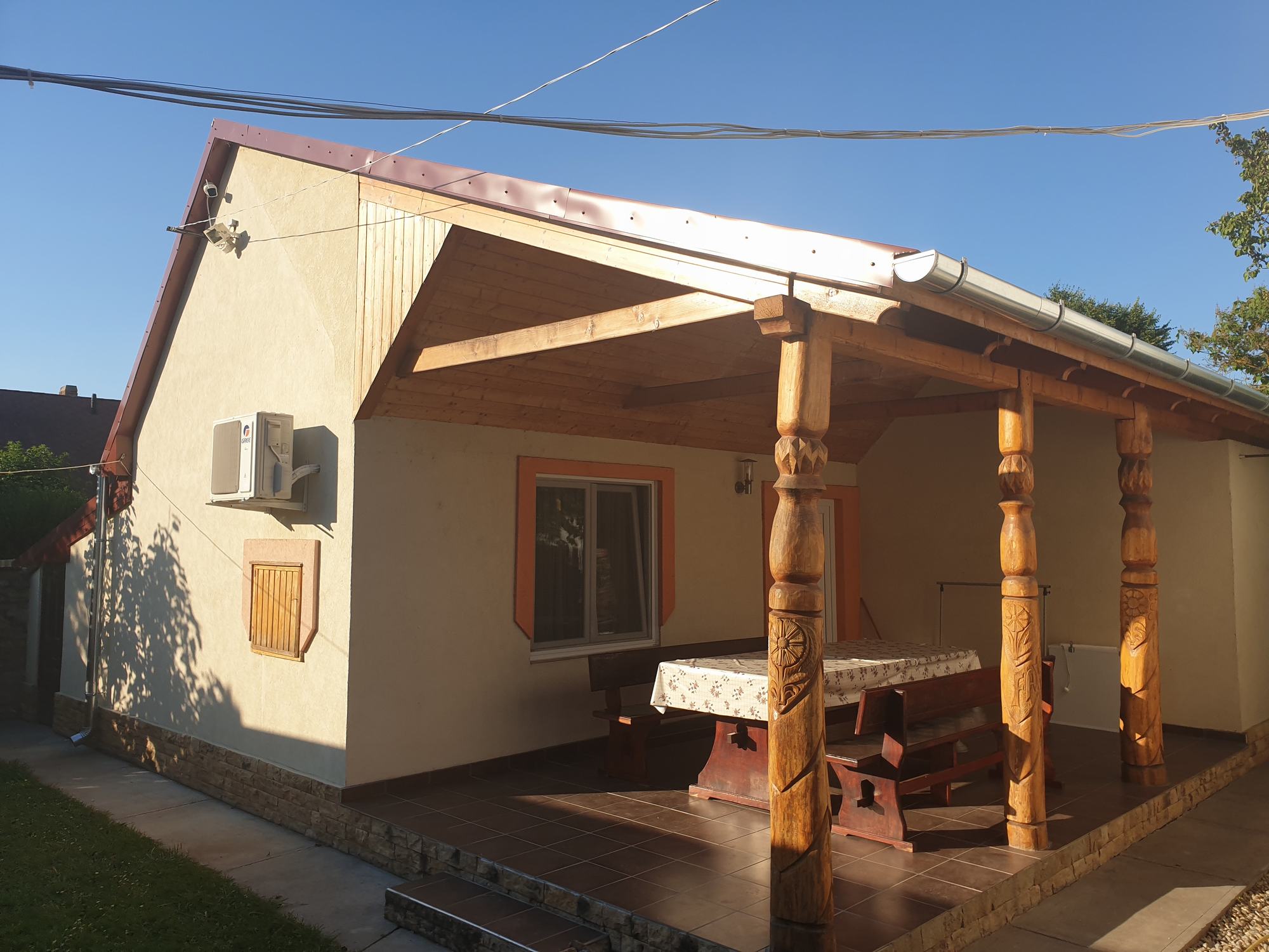 4 - 6 személyes vízparttól 500m-re fekvő balatonfenyvesi hangulatos nyaralóház faragott oszlopokkal