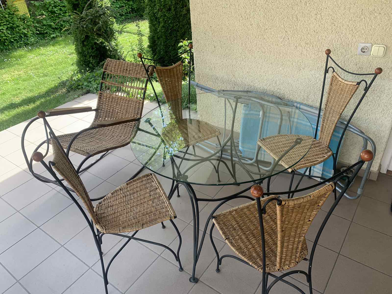 WC, fedett terasz, autóbeállók, nagy kert, hinta