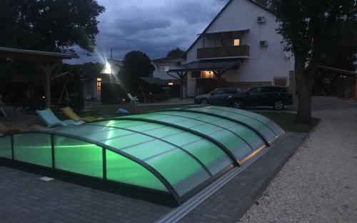FŰTÖTT FEDETT MEDENCE TALÁLHATÓ AZ UDVARBAN