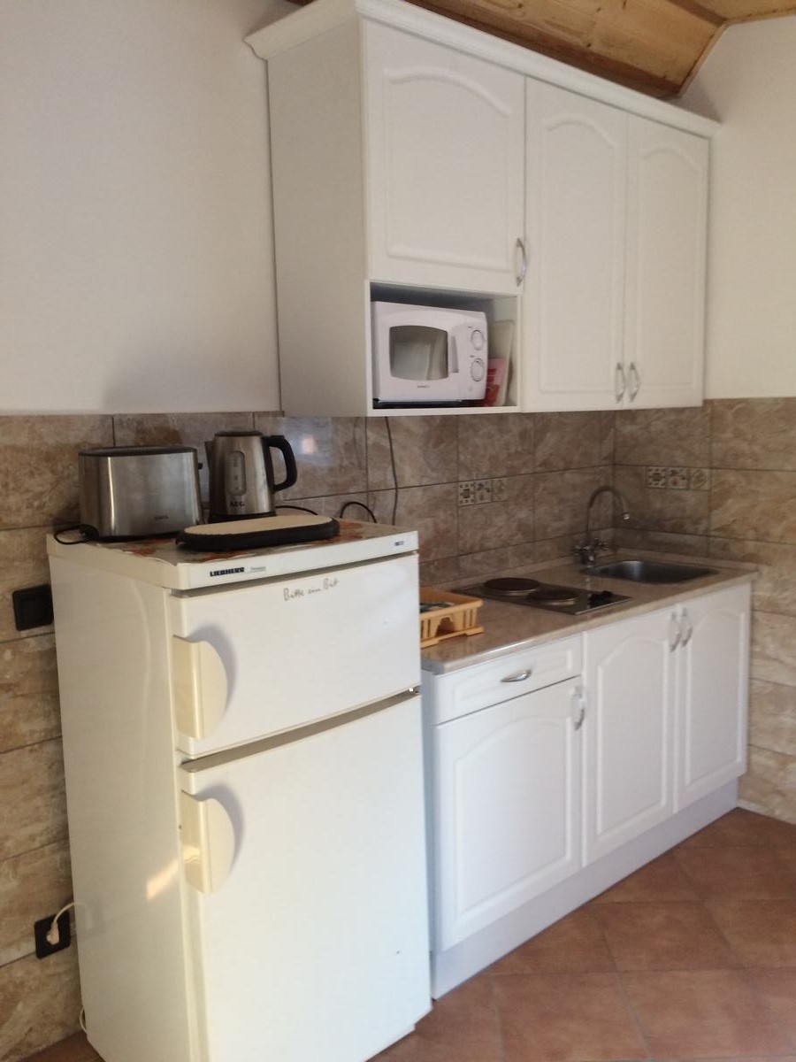 Egyterű studió apart külön zárható zuhanyzóval egyben a wc-vel.  Étkezni bent is és kint is lehet,