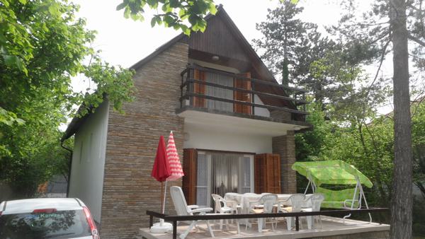8 - 10 személyes vízparttól 50 m-re fekvõ önálló balatonfenyvesi nyaraló