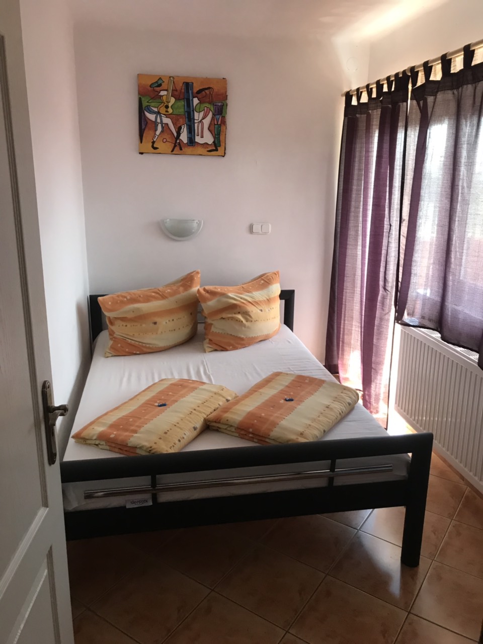 a hálószoba külön zárható, amelyben franciaágy található, a nappaliban a kihúzható kanapén további 2 ember alvására van lehetőség,