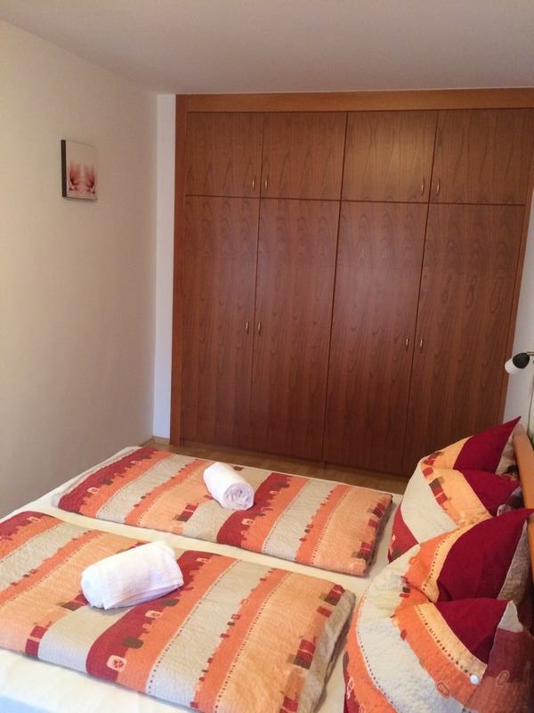 az apartmanban kényelmes 140x200m-es  franciaágy található, igény esetén 1db pótágy bevihető, vagy 1db gyerekágy,