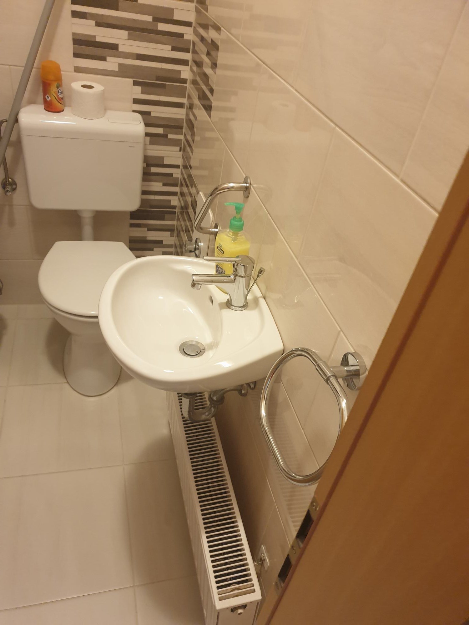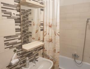 Egyterű studió apart külön zárható zuhanyzóval egyben a wc-vel. Enez kívül az apartman rendelkezik mégegy WC-vel   Étkezni bent is és kint is lehet.(Kint fedett terasz alatt található kerti  bútorok tartoznak hozzá.)