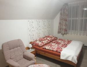 az apartmanban 2 személyre kényelmes kinyithaó kanapé  található és 2 db egyszemélyes fenyőágy, esetlegesen pótágyazható