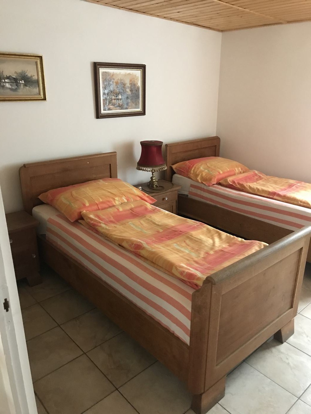 2db külön zárható hálószoba : az egyikben 1 db tölgyfa kókuszmatracos franciaágy + 2 db egyes normál méretű 200cm x 90cm-es ágy, a másik hálószobában 2 db normál egyes ágy.