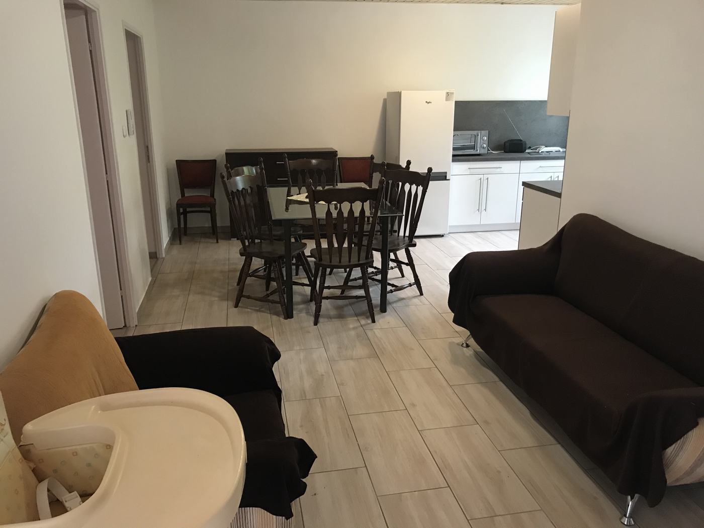 a nappaliban van egy további kihuzható kanapé ami pótágyként funkcionálhat, így összesen 8 fő elférhet