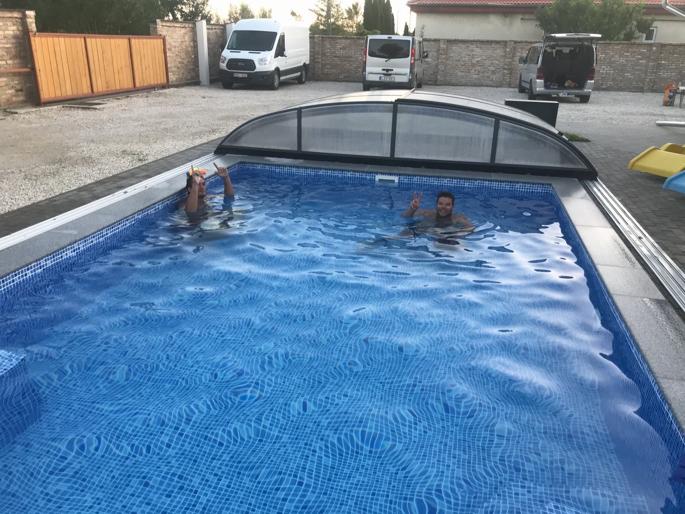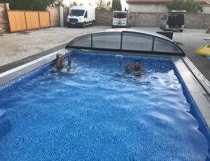 a ház mellett fűtött fedett medence található