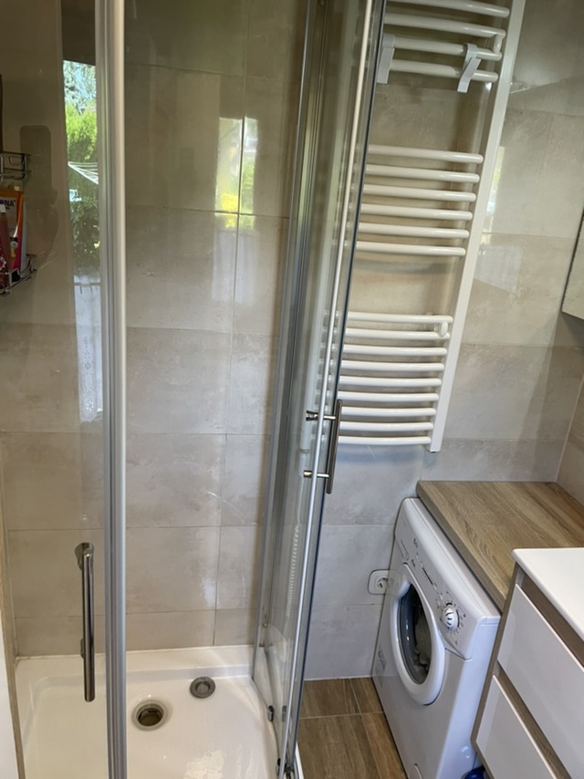 Küche, Dusche mit WC,Wohnzimmer mit Schlafzimmer, Terrasse, moderne Möbeln